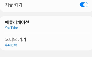 켜기 화면으로 이동하여, 오디오 기기를 무르면 되는데 앱은 최대 5개 선택할 수 있고, 블루투스를 선택하면 블루투스 기기에선 선택한 음악 앱 소리만 재생되며, 나머지 앱의 소리나 알림의 경우 휴대전화로 소리가 울리게 됩니다.