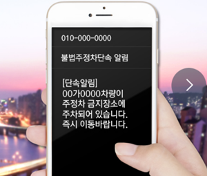 주정차단속알림시스템이란 불법 주정차 지역의 CCTV 단속으로 차량에 대한 신청자 조회시스템과 연동되어 운전자에게 메시지가 발송됩니다.