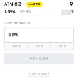 통장이랑 연동되어 있어 자동 충전하여 카톡으로 송금을 많이 하다 보니 현금을 쓸 일이 잘 없지만 급한 사유로 필요할 때 근처 ATM 기기를 찾은 후 카드 없이 출금할 수 있습니다.